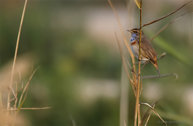 Pechiazul (Luscinia svecica) en una pequeña zona húmeda de la desembocadura del río Segura. Recorte aprox. 40%. Canon 40d + Canon 100-400 IS-USM + multiplicador Canon 1,4x+ Monopie Manfrotto
